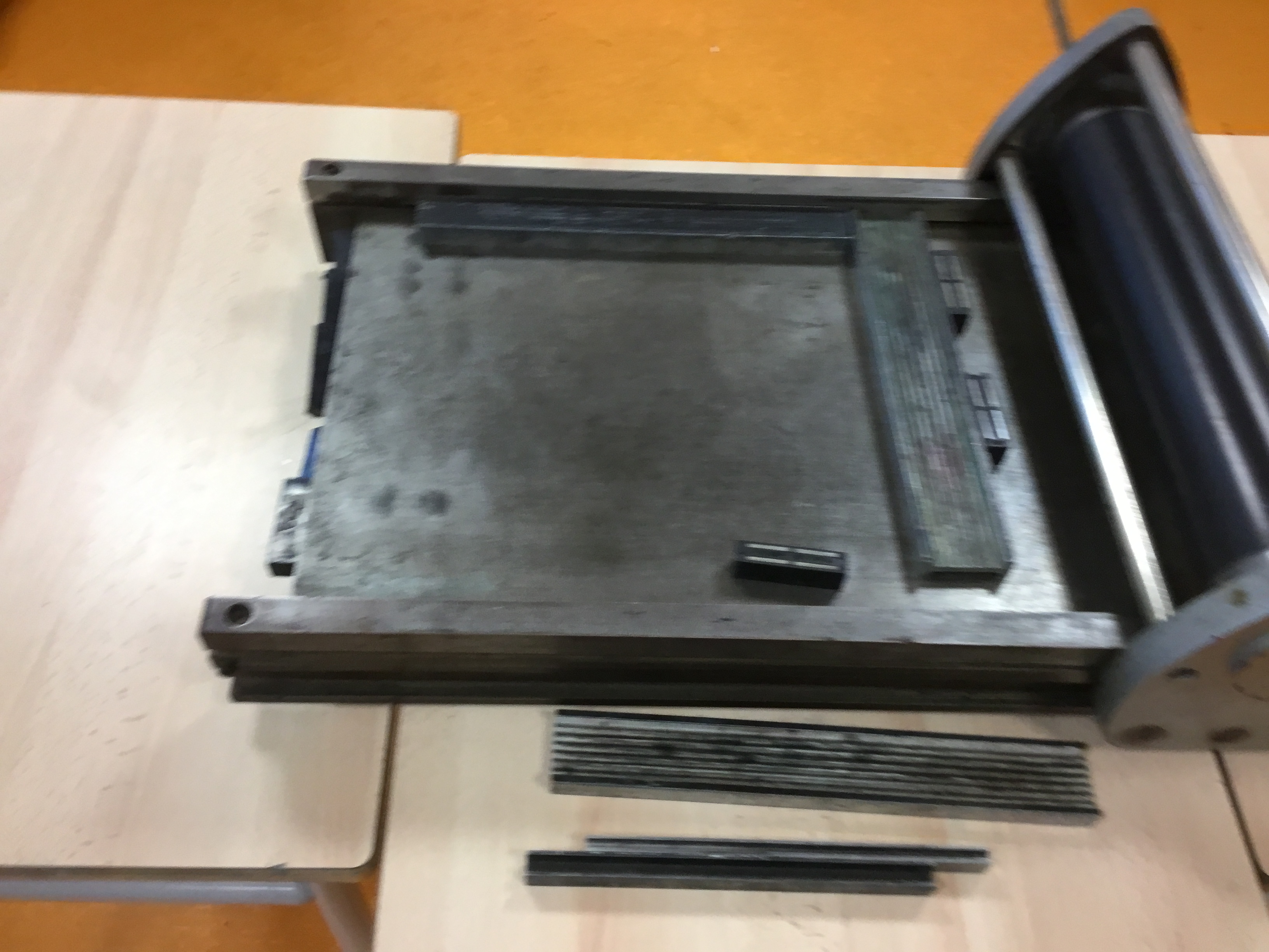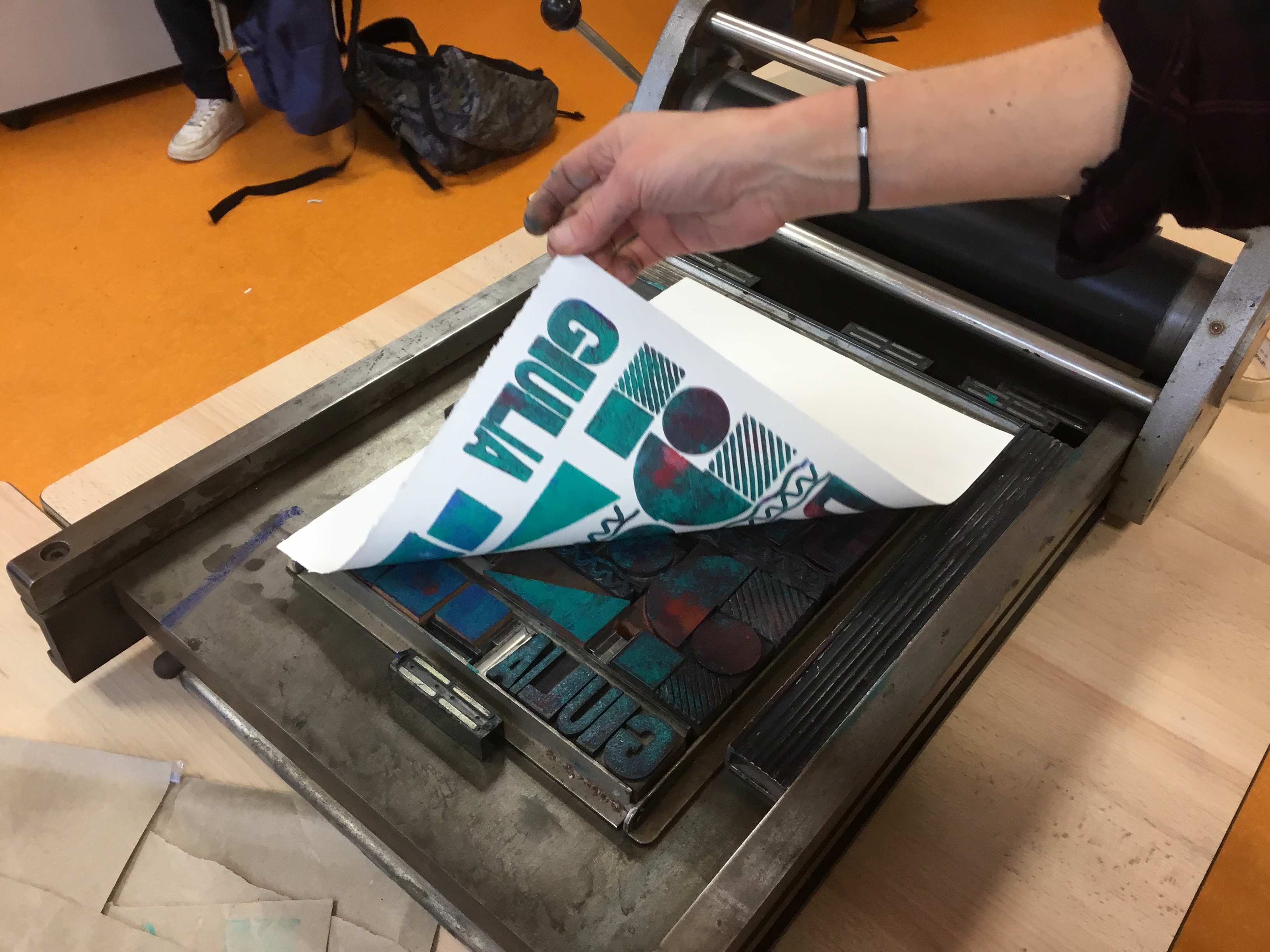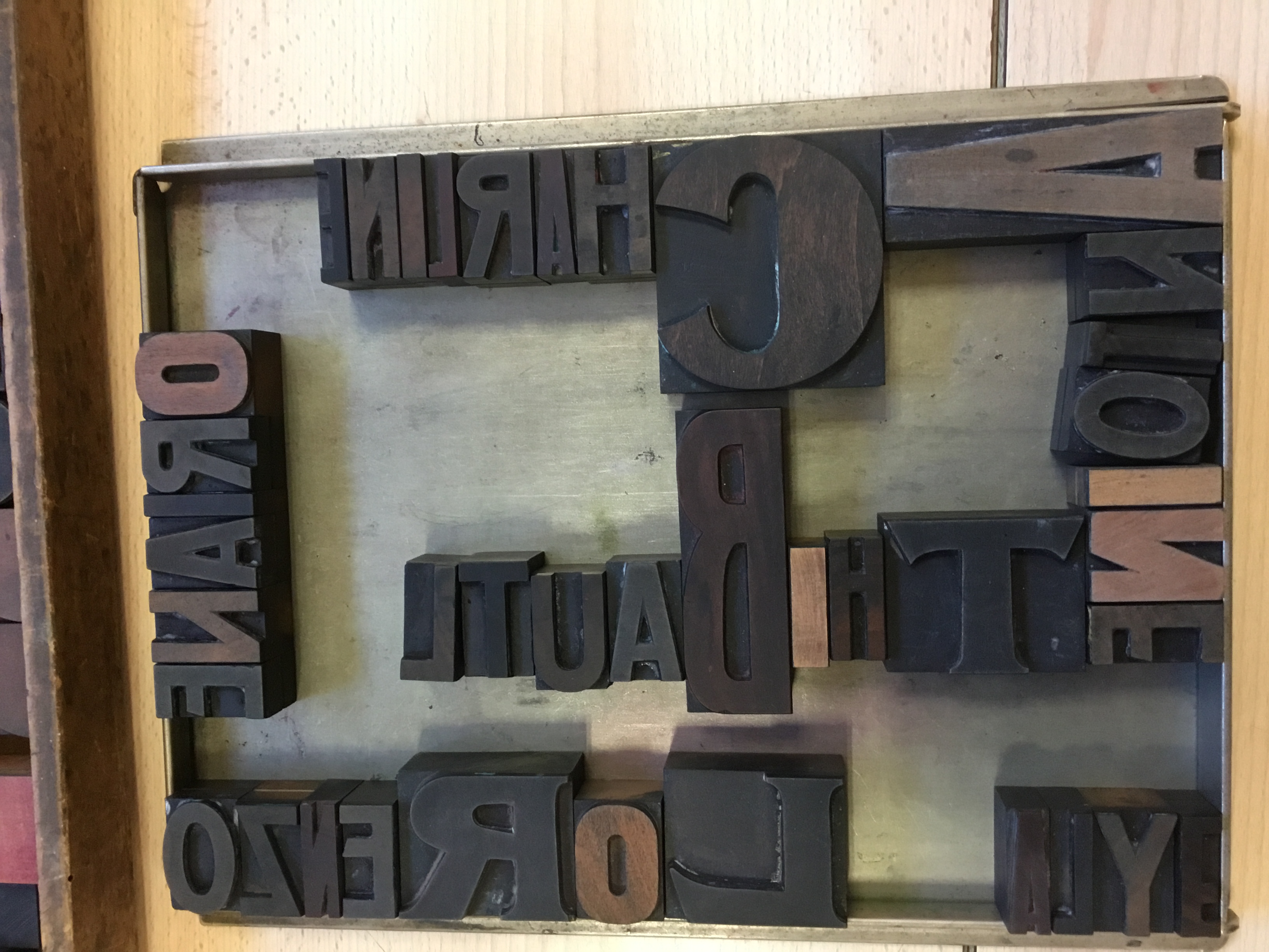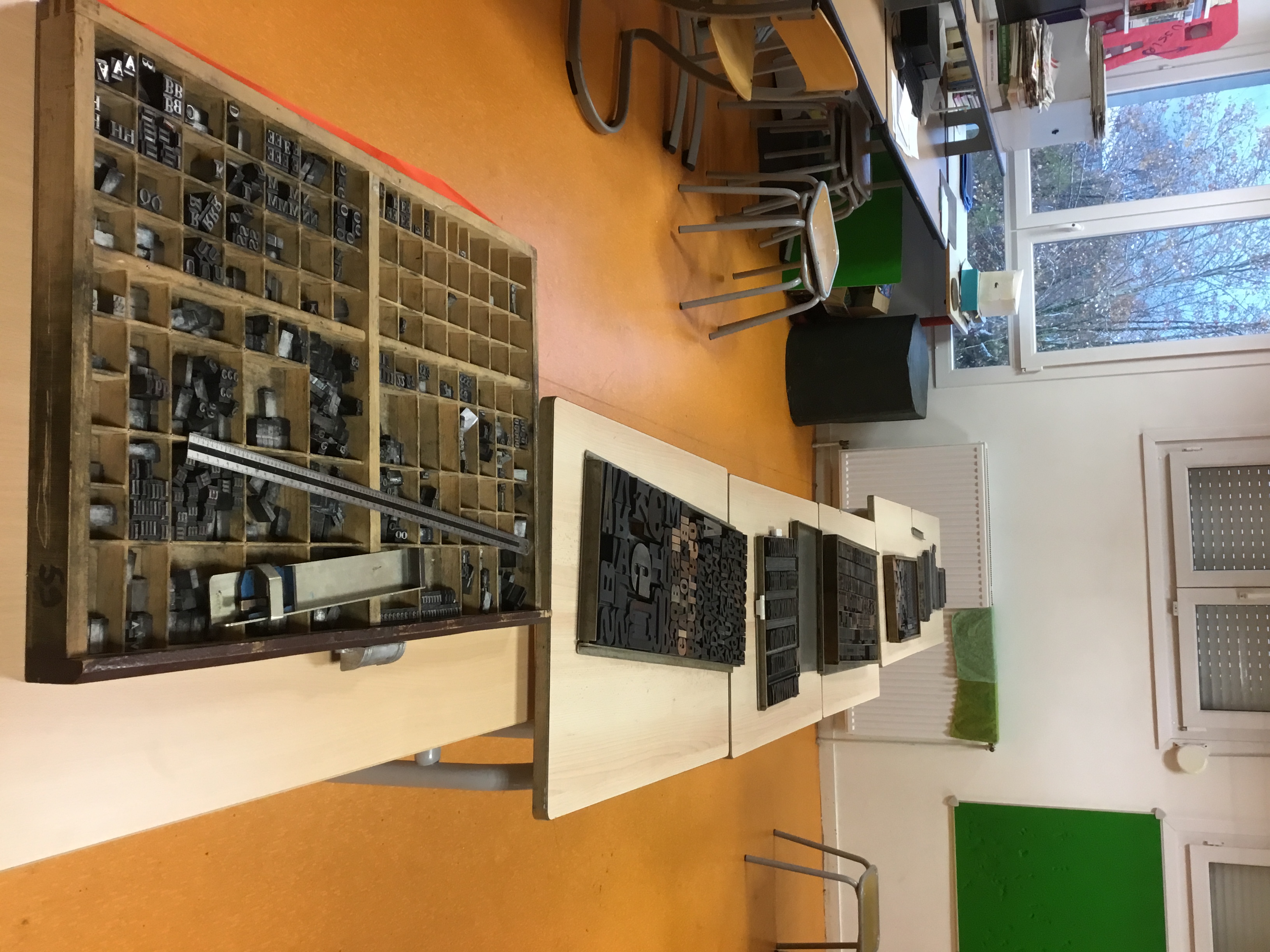 Les élèves ont pu s’initier à la typographie grâce au matériel de l’Atelier de Conflans et l’aide de Nathalie Torre, de la découverte de cette technique héritée de Guttenberg vers une ouverture plus artistique.