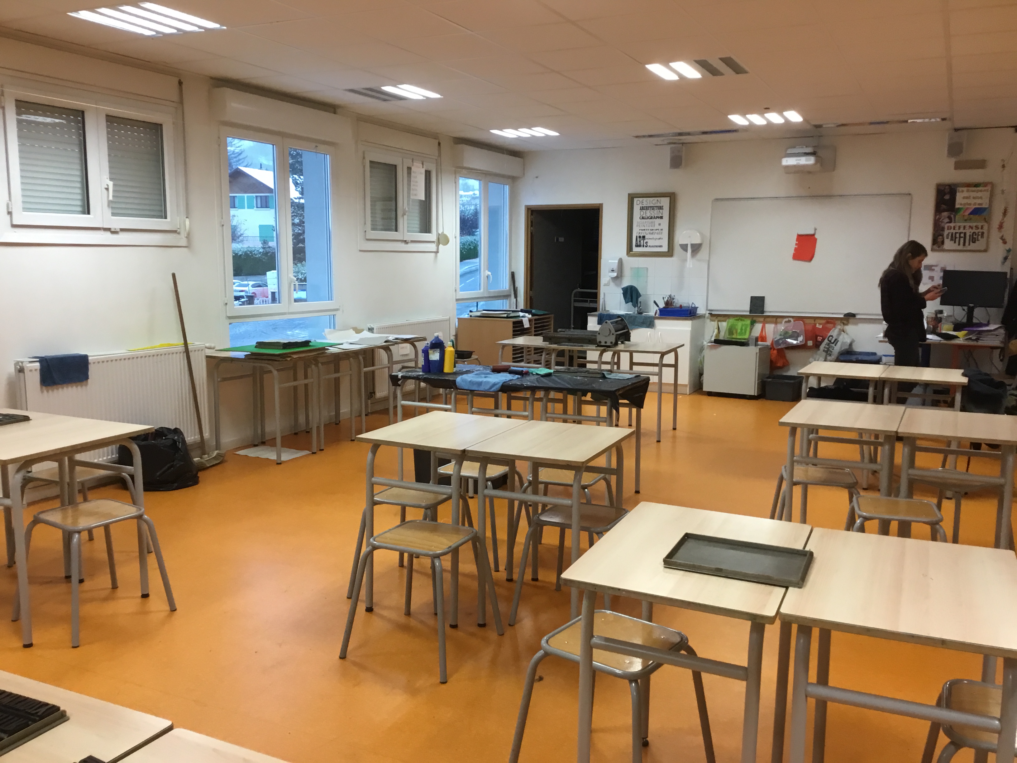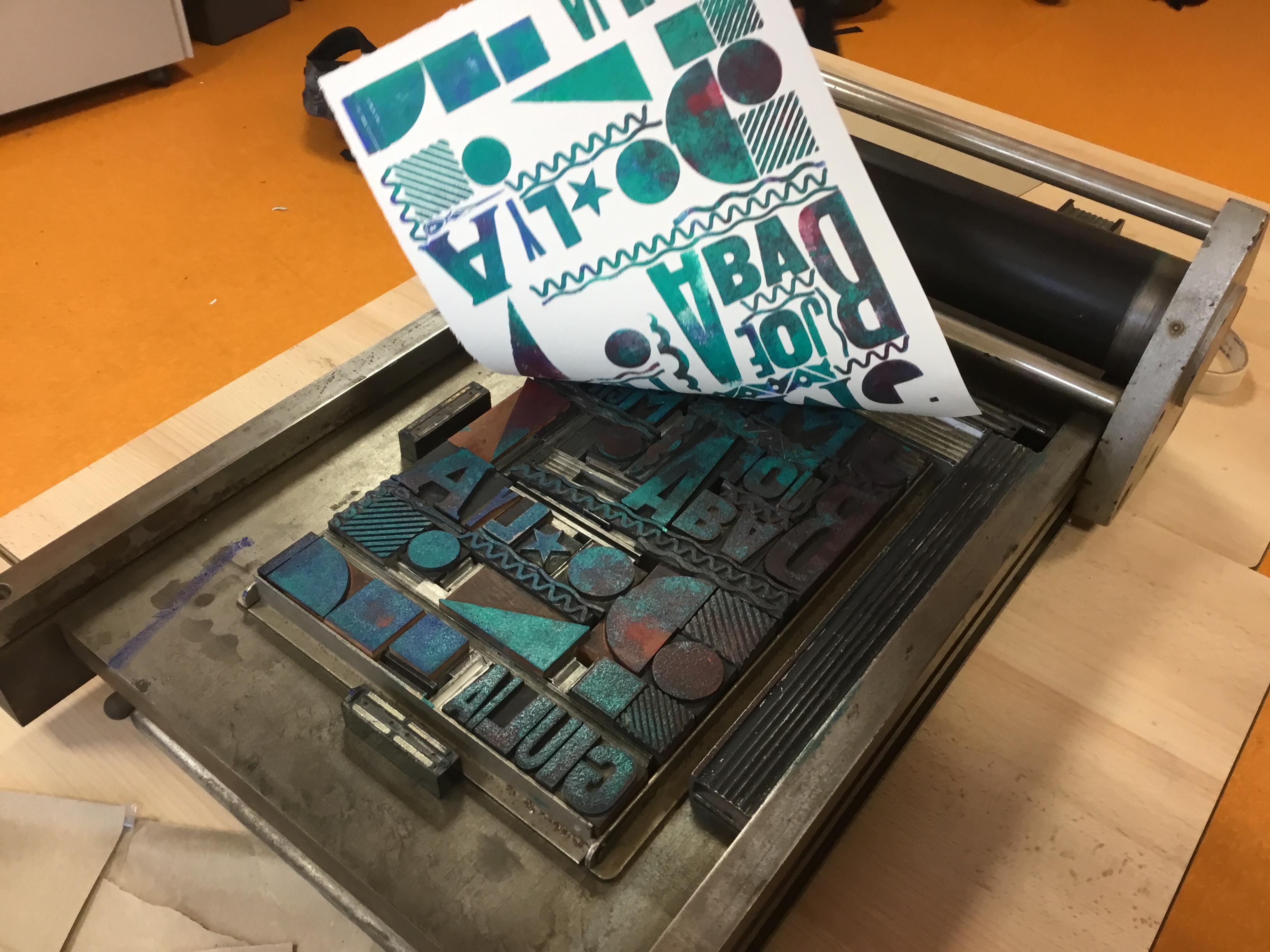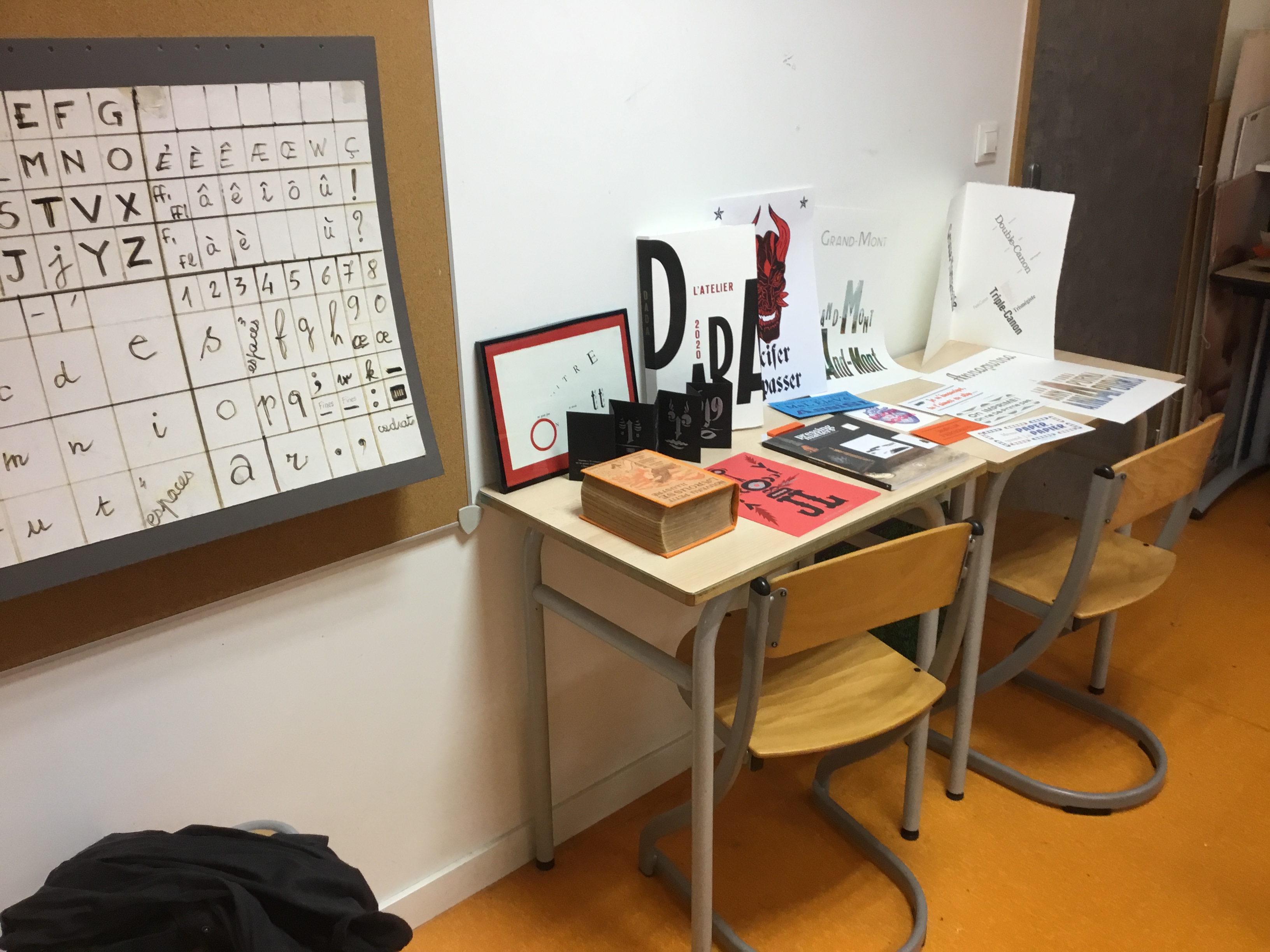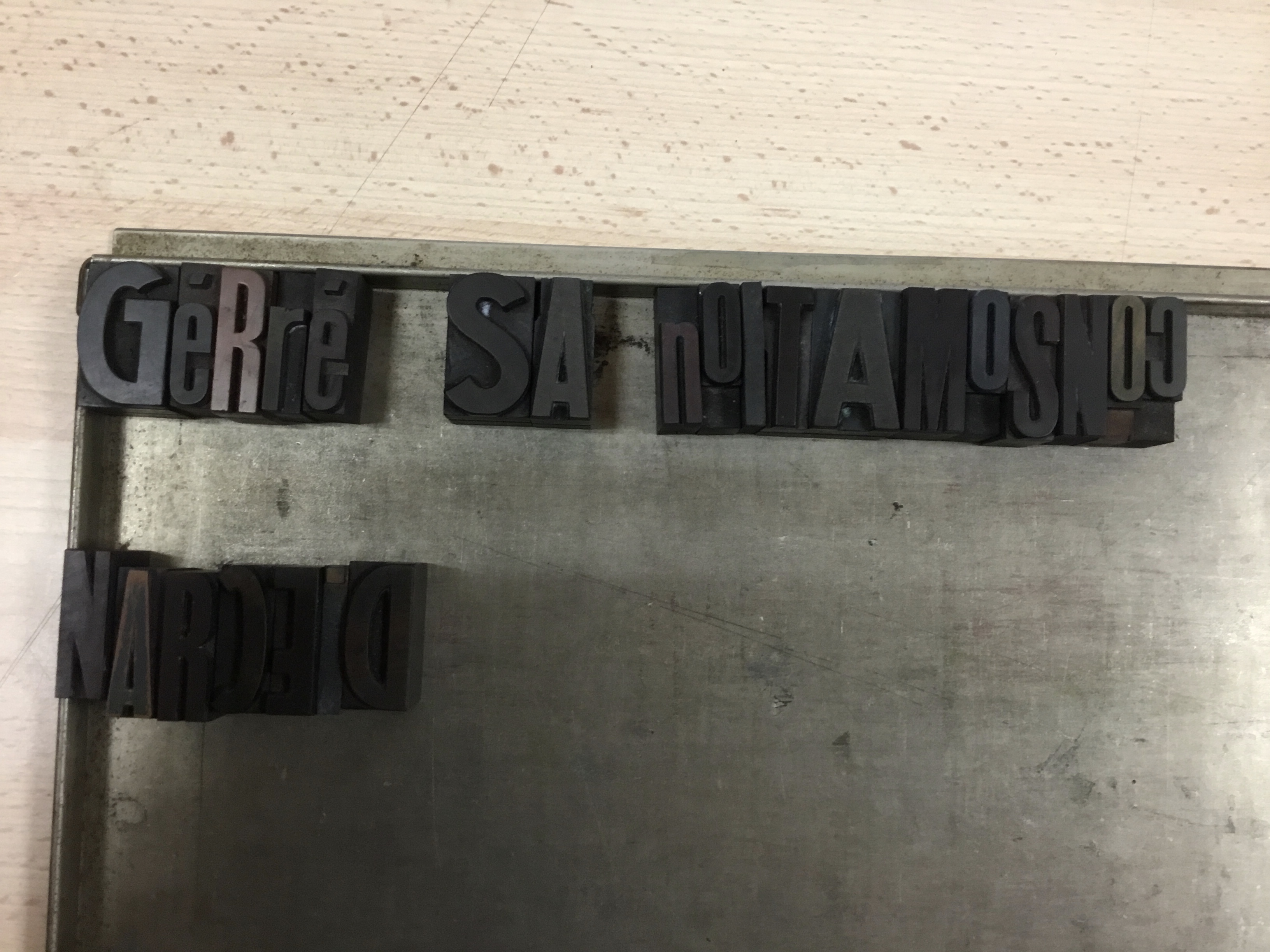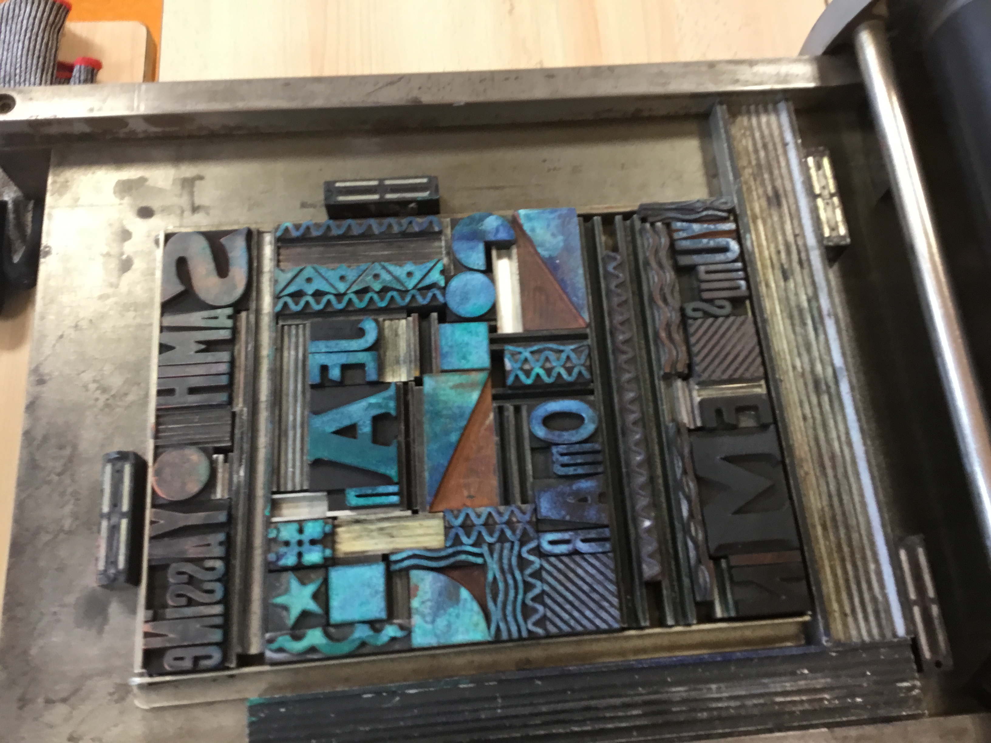 Les élèves ont pu s’initier à la typographie grâce au matériel de l’Atelier de Conflans et l’aide de Nathalie Torre, de la découverte de cette technique héritée de Guttenberg vers une ouverture plus artistique.