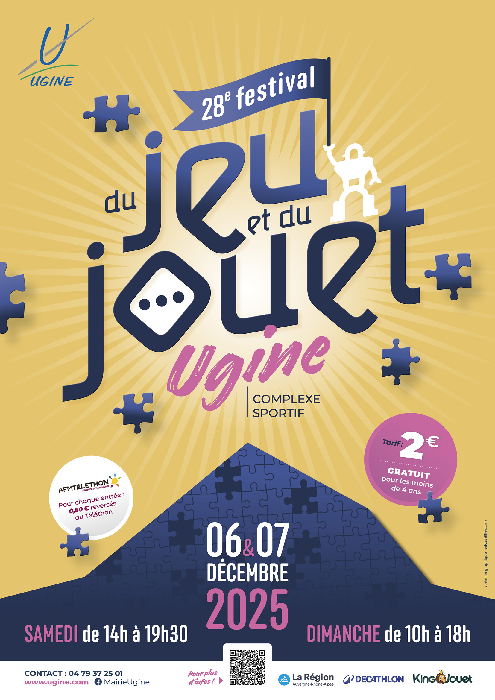La Ville d’Ugine est heureuse d’organiser son 28ème FESTIVAL DU JEU ET DU JOUET les 6 et 7 décembre prochains.