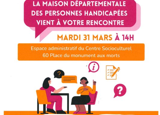 Par admin perrier-de-la-bathie, publié le lundi 30 mars 2026 12:28 - Mis à jour le lundi 30 mars 2026 12:28La Maison départementale des personnes handicapées sera demain 31 mars 14 h au centre socioculturel -